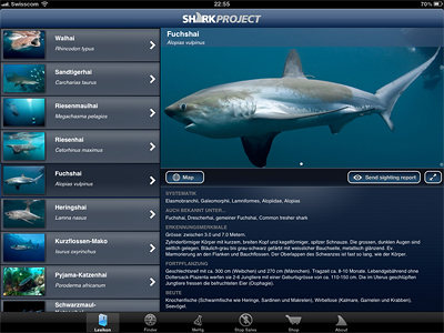 Mit über 140 Bildern teils weltberühmter Unterwasserfotografen ist es ein Genuss die Informationen im Hailexikon aufzunehmen. Aber nicht genug, sie können weitere 100 Bilder direkt in der App kaufen und so die Arbeit von Sharkproject weltweit unterstützen.